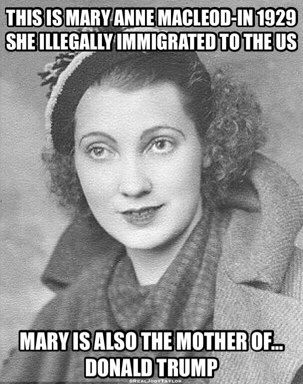 Mientras Donald Trump sigue preocupado por la inmigracion…. Posted on January 30, 2017 by Gerald Dean Esta es Mary Anne Macleod. En 1929 emigro ilegalmente a los USA Mary resulta ser tamboen la madre del Presidente Donald Trump Share this: Share on X (Opens in new window) X Share on Reddit (Opens in new window) Reddit Share on Facebook (Opens in new window) Facebook Like Loading... Related