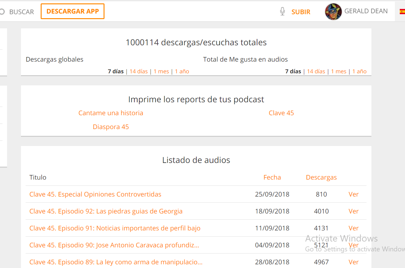 Gracias por ayudarnos a alcanzar el millon de descargas en Ivoox. Posted on September 25, 2018 by Gerald Dean Es impactante ver ese numero. Y aun mas sabiendo que tambien hay otros canales que difunden Clave45, y las descargas se contabilizan en los suyos. y que no puedo contabilizar las escuchas de Edenex, ni de TDLD radio. Muchas Gracias!!! Share this: Share on X (Opens in new window) X Share on Reddit (Opens in new window) Reddit Share on Facebook (Opens in new window) Facebook Like Loading... Related