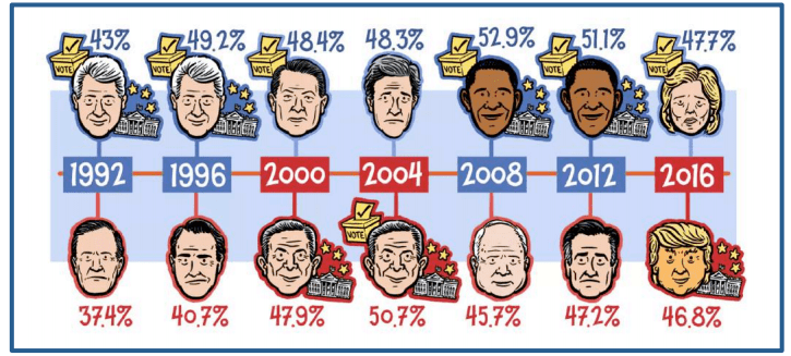 El colegio electoral, y no el voto popular es el que elige presidente en USA. En la actualidad hay 538 y se necesitan 270 votos para ganar.