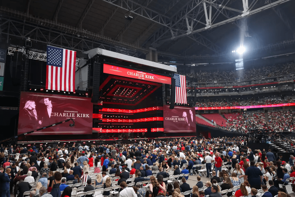 El funeral de Charlie Kirk, celebrado en un estadio de Arizona, tuvo más de mitin político que de ceremonia fúnebre. Poco hubo de los rituales íntimos que suelen acompañar la despedida de un ser humano. Desde el inicio, una procesión de figuras políticas aprovecharon la plataforma, los medios y la ocasión para promover sus ideologías. El clímax llegó con la aparición de su viuda, rodeada de fuegos artificiales, como si se tratara de una estrella del wrestling estadounidense.