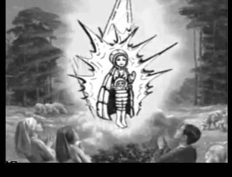 Una impresion artistica de la descripcion del ser visto en Fatima, y que fue atribuido como “La virgen Maria”, segun los pastores que aducian haberla visto.